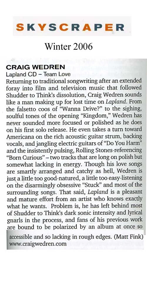 “Wedren's voice sounds terrific, an expressive and formidable instrument..”- Pitchfork.